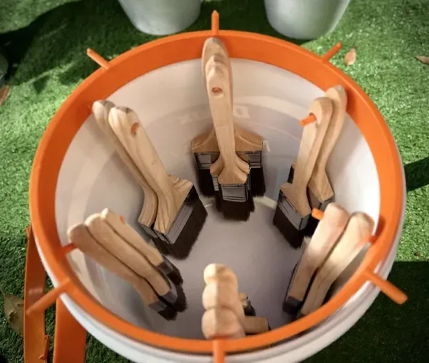 With Brush Safe, you can store your brush so it stays soft, shaped, and ready for the next coat—without endless scrubbing or waste. Simply hang it inside a bucket to soak or hook it on the outside to dry. No more balancing acts, no more ruined bristles, no more buying new brushes every week.